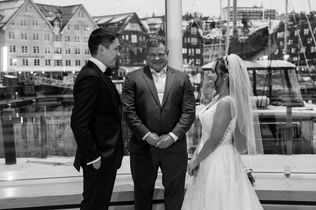 Severina og James kom hele veien fra Seattle i USA til Tromsø sammen med mange venner og familie for å gifte seg i November 2024. Det startet med en Rehersal Dinner dagen før bryllupet etterfulgt av en tur på Brim Explorer for å se etter nordlyset. Dagen etter startet på Scandic Ishavshotell med forberedelser og First Look, deretter gikk turen til Ishavskatedralen der seremonien var. Etter seremonien dro vi til Tromsdalen Lodge & Camping, Porten til Ishavet og Full Steam for de offisielle bildene, og når alt var ferdig ble det en kort hvilepause før festen og middagen tok plass på St. Elisabeth Spa Hotel.